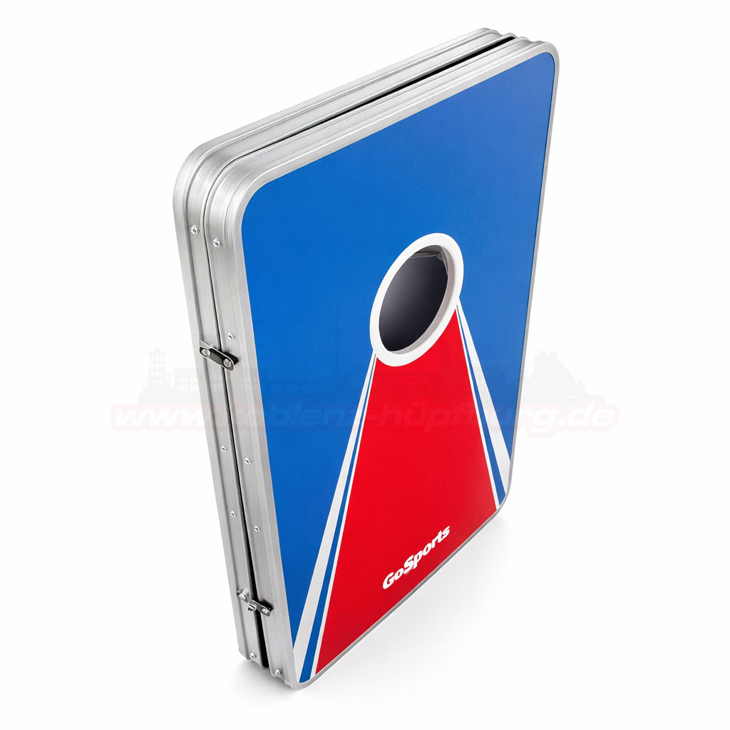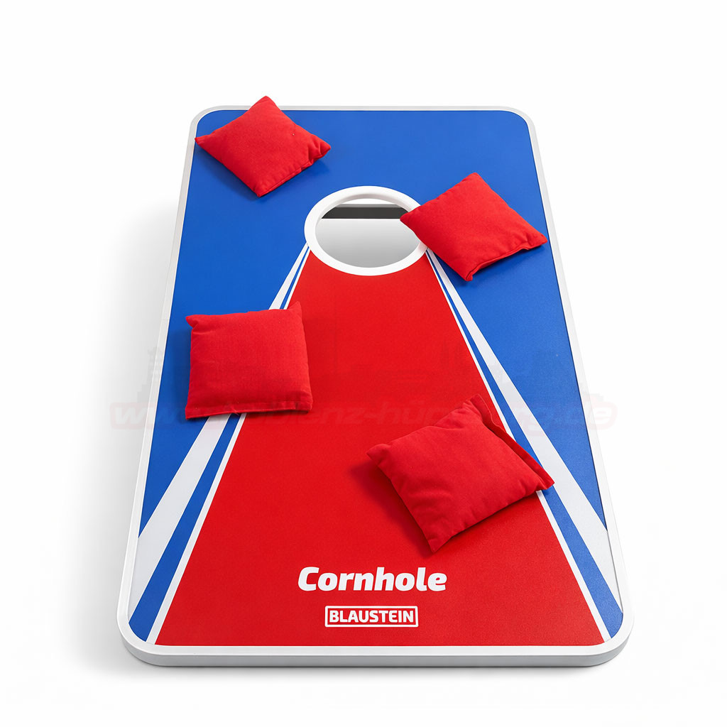 - 🎯 Hochwertiges Corn Hole Spielbrett im modernen Rot-Blau-Design