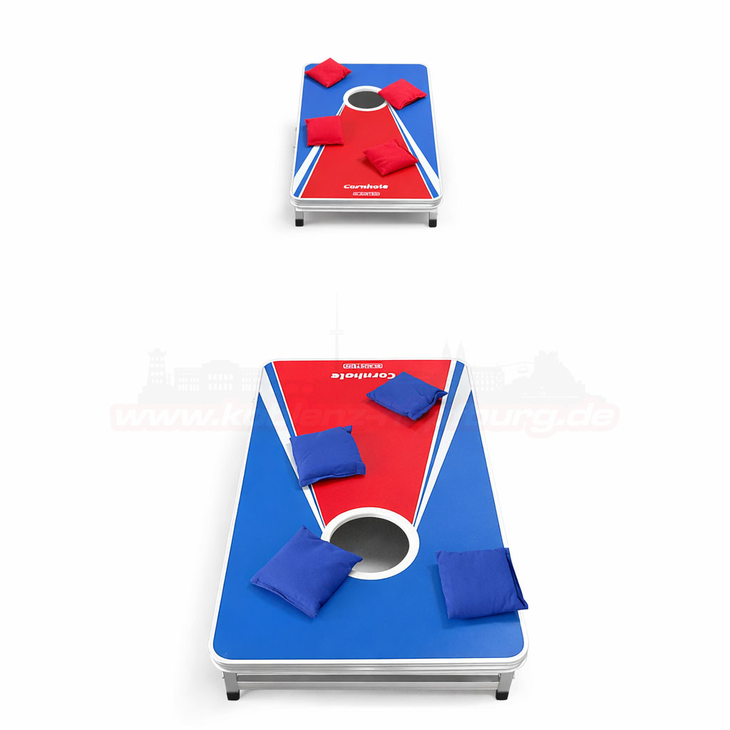 Miete jetzt das Corn Hole Set in Koblenz! Das hochwertige Spielbrett im auffälligen Rot-Blau-Design inklusive roter/blauer Wurfsäckchen sorgt für Spaß bei Kindergeburtstagen, Familienfeiern und Events. Einfache Online-Anfrage & Wochenendpauschale (Fr–Mo). Selbstabholung an unserer Ausgabestelle.