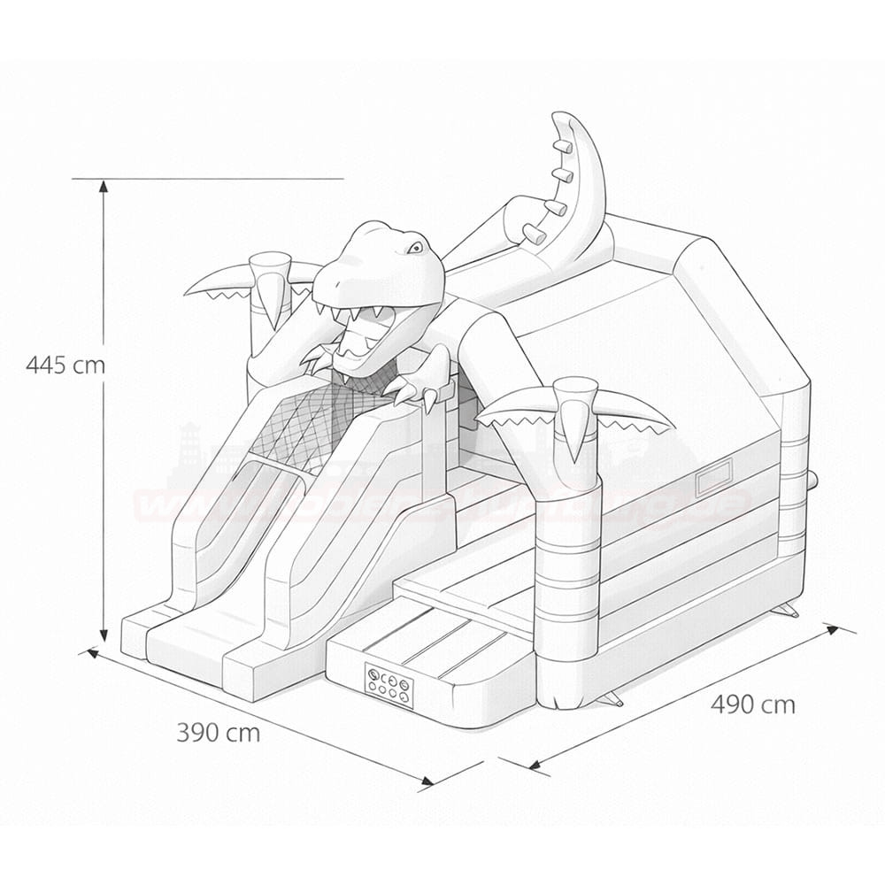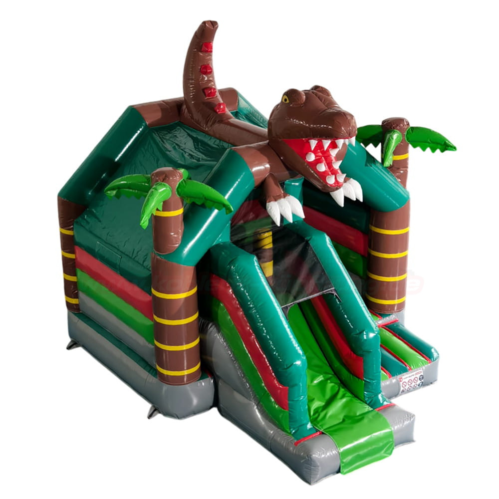 Mit der Hüpfburg Combo Dino mit Rutsche wird jedes Kinderfest zu einem echten Abenteuer! Diese liebevoll gestaltete Hüpfburg begeistert mit einem großen, auffälligen Dinosaurier-Design und kombiniert gleich mehrere Spielmöglichkeiten in einem: Hüpfen, Klettern und Rutschen – alles in einem sicheren, kompakten Erlebnisbereich.