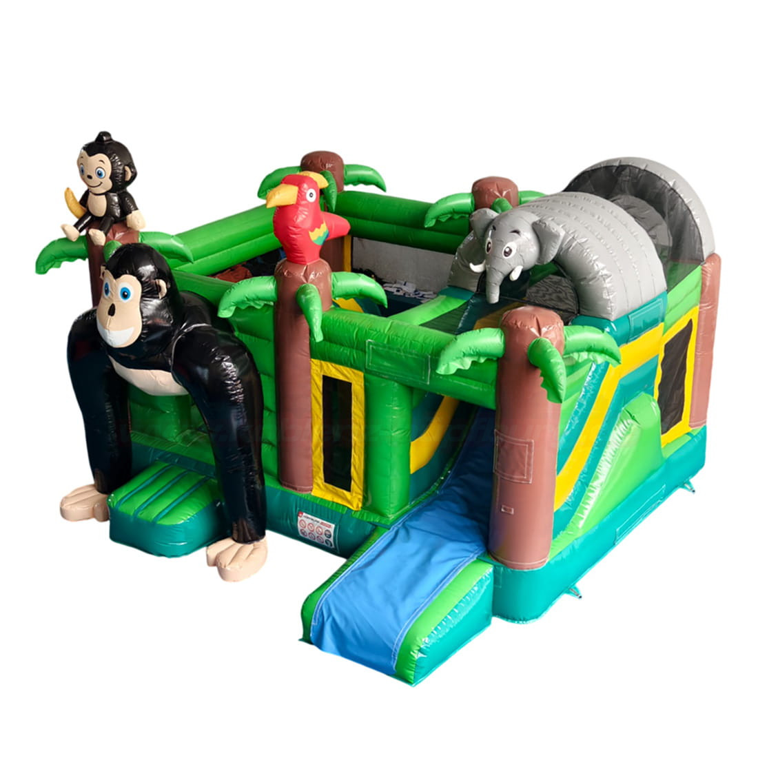 Die Kombination aus auffälligem Design, vielseitigen Spielmöglichkeiten und hoher Sicherheit macht diese Hüpfburg zu einem echten Highlight. Die detailreichen Figuren laden Kinder in eine fantasievolle Dschungelwelt ein und sorgen für unvergessliche Momente.