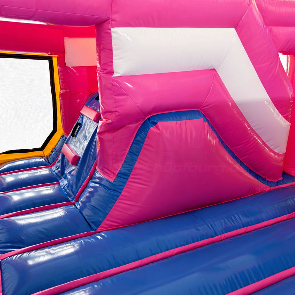 - Seitlich sorgt eine integrierte Rutsche mit sanftem Auslauf für zusätzlichen Spaß