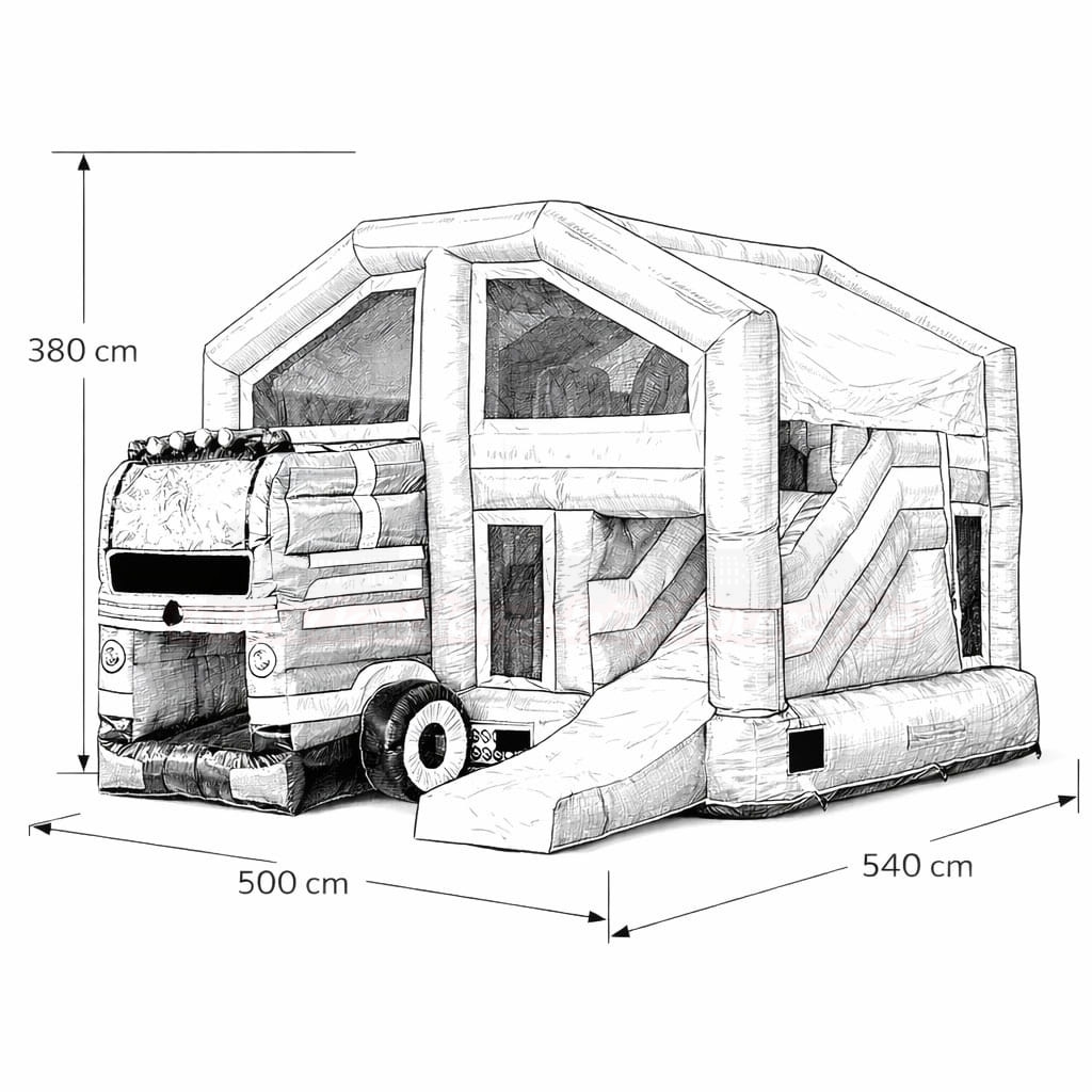 Die Kombination aus Hüpfburg und Rutsche sorgt für besonders viel Abwechslung und macht diese Feuerwehr-Hüpfburg zu einem Highlight auf jedem Fest.