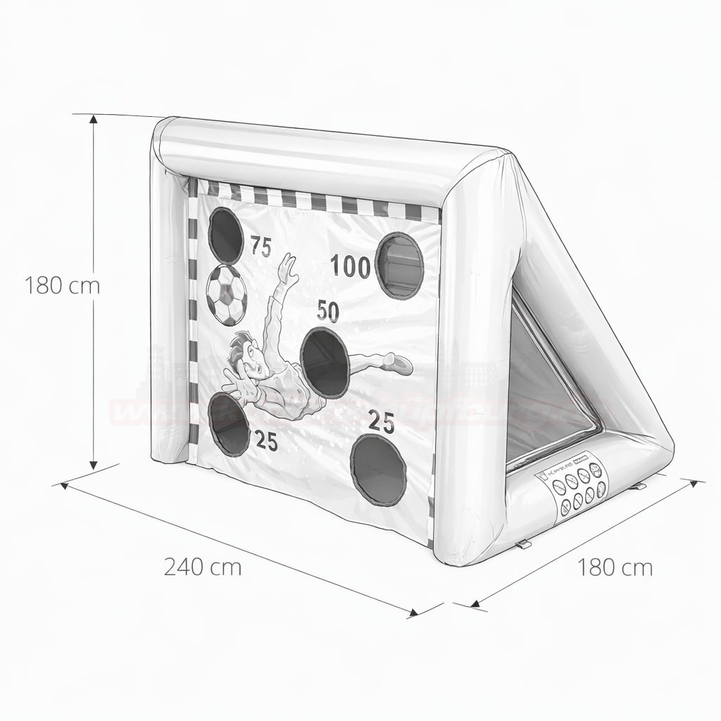 Die aufblasbare Torwand ist ein echtes Highlight für alle kleinen und großen Fußballfans! Ob Kindergeburtstag, Familienfest, Vereinsfeier oder Event – mit dieser Torwand wird jeder zum Torjäger. Das klassische Zielspiel sorgt für Wettbewerb, Bewegung und jede Menge Spaß.